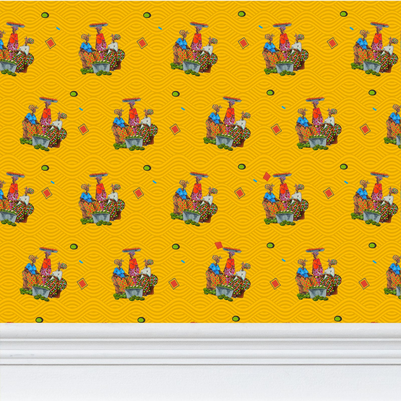 Bold lines and grounded earth tones mirror the steady hands of women who fetch, farm, heal, and uphold. Whether adorning a living room, study, or creative space, this pattern evokes more than aesthetics—it honors legacy, responsibility, and quiet power.
