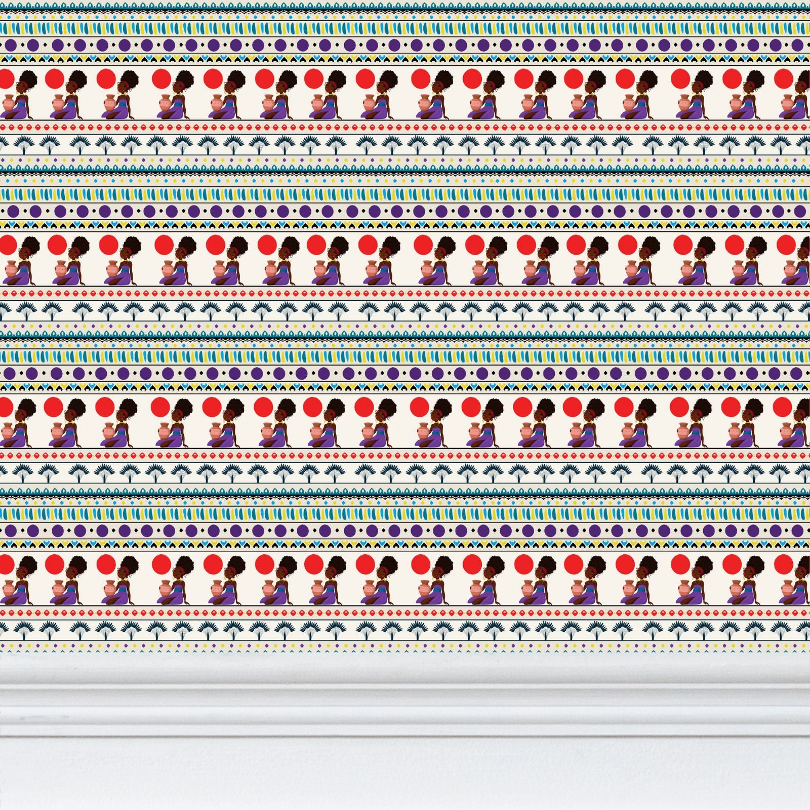 This wallpaper design honors the noble strength of African women who have long sustained families and communities through tireless devotion. Their rhythm from dawn to dusk inspires every stroke of this pattern embedding heritage and pride into your everyday spaces.