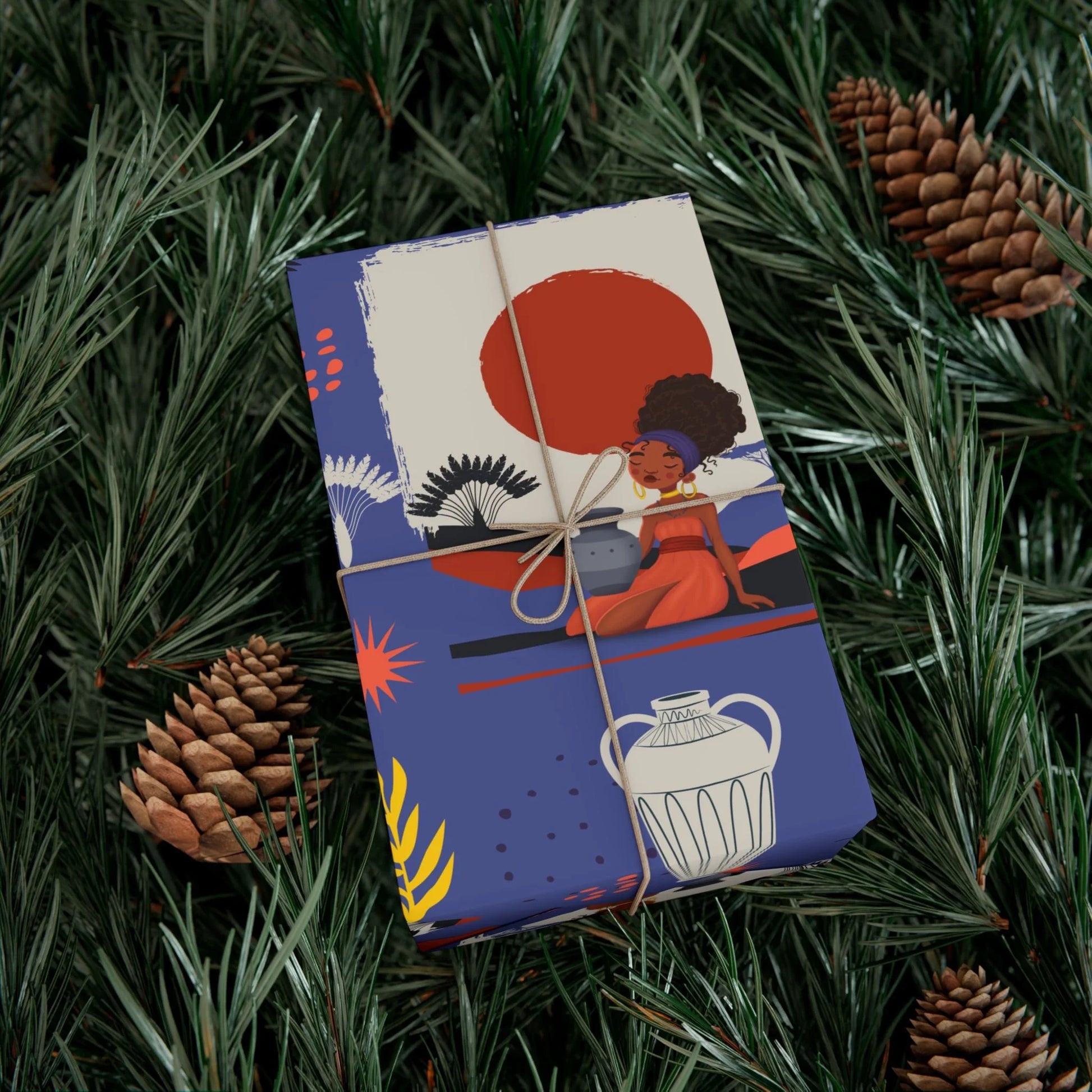 Inspired by the enduring power of African women At the Sunset Portrait celebrates those who lead nurture and uplift generations. As the day ends their work never does—cooking fetching water and preparing homes with dignity and care. This gift wrap is more than decoration. It’s an homage.